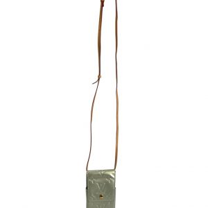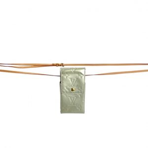 TheRealList presents: a fabulous mint green Louis Vuitton Vernis phone holder bag. From 1999, this fantastic minibag/phone holder is constructed of mint green patent leather embossed with the famous LV print and is made complete with an adjustable leather strap. This versatile bag was created to be used as a clutch, crossbody, or waist bag.